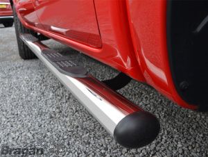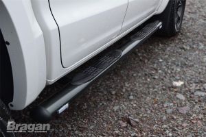 Side Bars - BLACK + Step pads + White LEDs x4 For Mazda BT-50 2012 - 2016