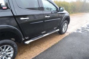 Black Stainless Side Bars with Down Lights + White LEDs For Mitsubishi L200 Triton 2015 - 2019