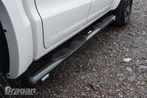To Fit 2010 - 2016 VW Volkswagen Amarok Side Bars + White LEDs - Black