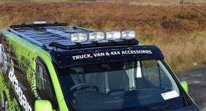 Roof Bar B + Spots + LEDs For Ford Transit MK8 2014 - 2021 Front Flat Low
