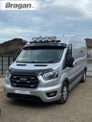 Roof Bar + LED Jumbo Spots For Ford Transit MK8 2014-2021 Front Low Light Van
