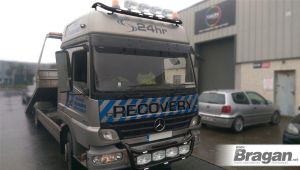 To Fit Mercedes Atego Front Roof Light Bar Black Steel + Round Spot Lamps