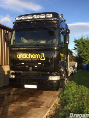 To Fit Renault Premium Front Roof Light Bar Black Steel + Jumbo Spots + Slim LEDs