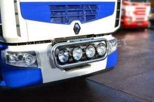 To Fit Renault Premium Front Roof Light Bar Black Steel + Round Spot Lamps
