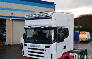 To Fit 2009+ Scania P, G, R, 6 Series Highline Cab Roof LIght Bar + Slim LEDs + Rectangle Spots