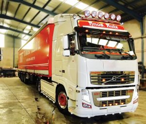 To Fit Volvo FH Series 2 & 3 Globetrotter XL Roof Bar + Jumbo Spots x4 + Slim LEDs + Clear Lens Beacons x2