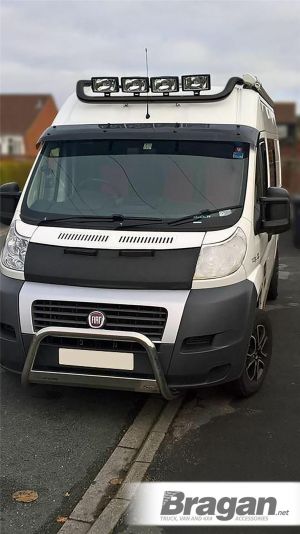 To Fit 2007-2014 Fiat Ducato Van Minibus Stainless Steel Front Grill Bar + LEDx3 - BLACK