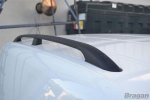 To Fit 2002 - 2014 Ford Transit / Tourneo Connect LWB Black Roof Rails + Silver Cross Bars + Load Stops