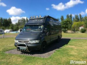 Roof Bar A + Jumbo LED Spots + White LEDs For Iveco Daily 2014+ Front BLACK