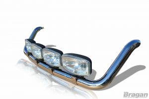 Roof Bar + Jumbo Spot Lamps For Nissan NV400 2010+ Polished Steel Top Light Bar