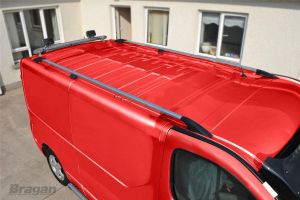 Roof Rails + Cross Bars + Load Stops For Nissan Primastar SWB 2002 - 2014 BLACK