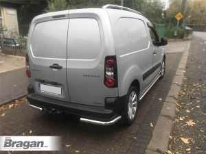 Chrome Stainless Steel Rear Corner Bars + LEDs For Peugeot Partner Rifter 2019+