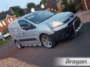 Chrome Stainless Steel Side Bars + White LEDsFor Peugeot Partner 2008 - 2016 With Mudflaps