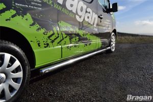 Black Stainless Steel Side Bars + Down Lights For Opel Vauxhall Vivaro SWB 2014 - 2019