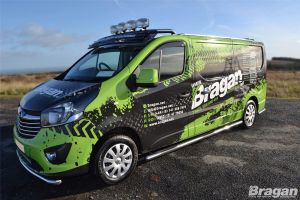 Black Stainless Steel Side Bars + White LEDs + Down Lights For Opel Vauxhall Vivaro SWB 2014-2019