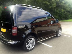 Black Stainless Steel Side Bars With Down Lights + White LEDs For Volkswagen Caddy Maxi LWB 2015 - 2021