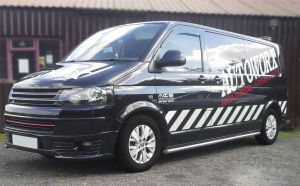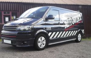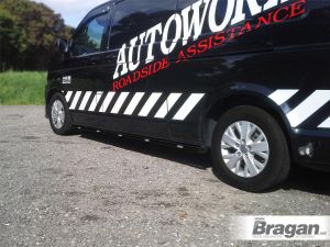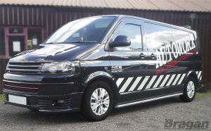 Black Side Bars + White LEDs For Volkswagen Transporter T5 LWB 2004-2015